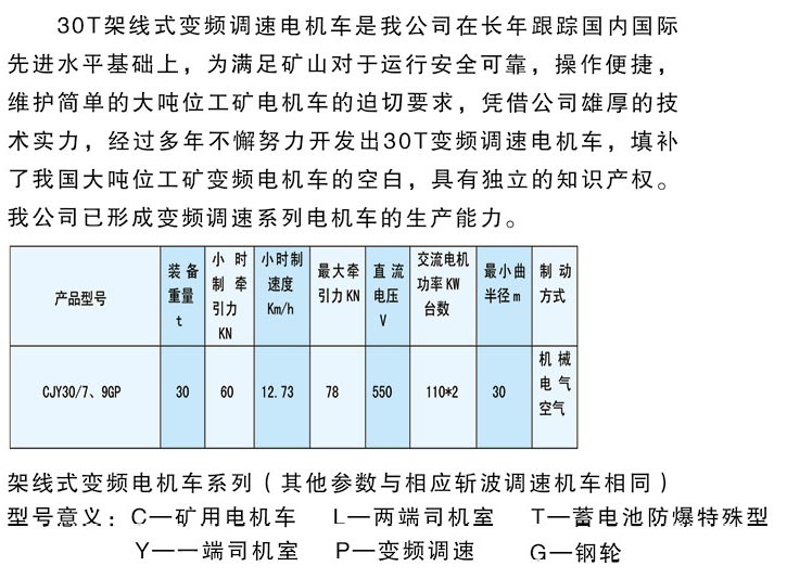 30T架線式變頻調速電機車